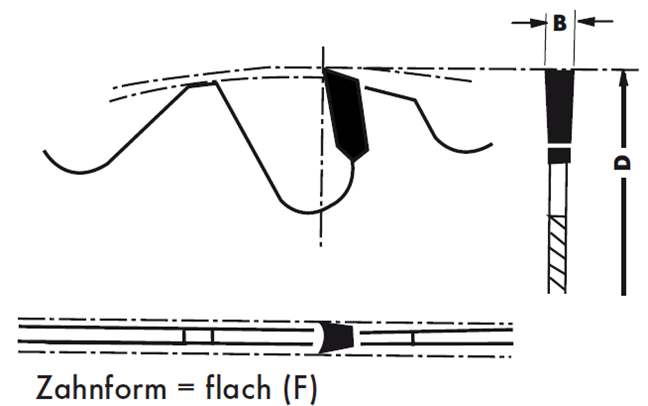 • Flachzahn mit Fase für grobe Aufteilschnitte
